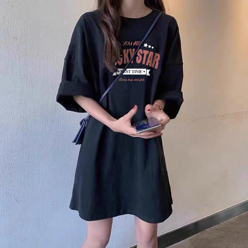 美式复古200斤胖mm大码纯棉短袖中长款T恤裙女2025夏季新款连衣裙