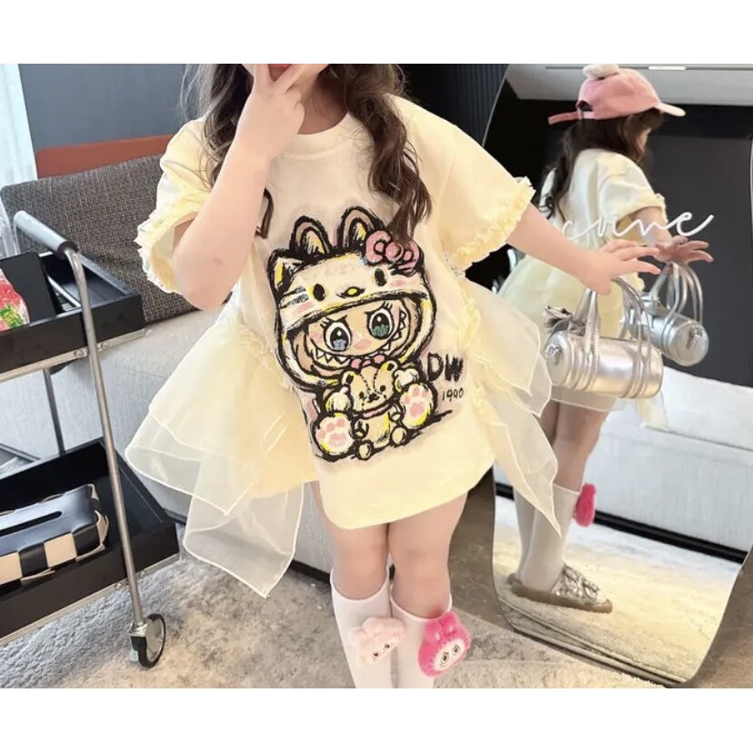 女童2025夏季新款连衣裙女宝宝时尚洋气拼接网衫裙网红同款公主裙