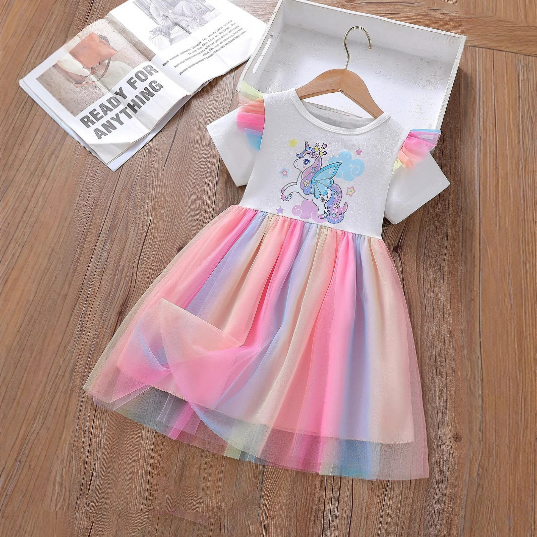 外贸夏季新款连衣裙洋气纱裙网纱公主裙宝宝裙子女童短袖儿童夏装