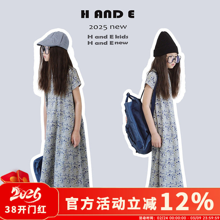 H AND E 原创童装米奇碎花长裙女童2026夏季新款连衣裙宽松显瘦