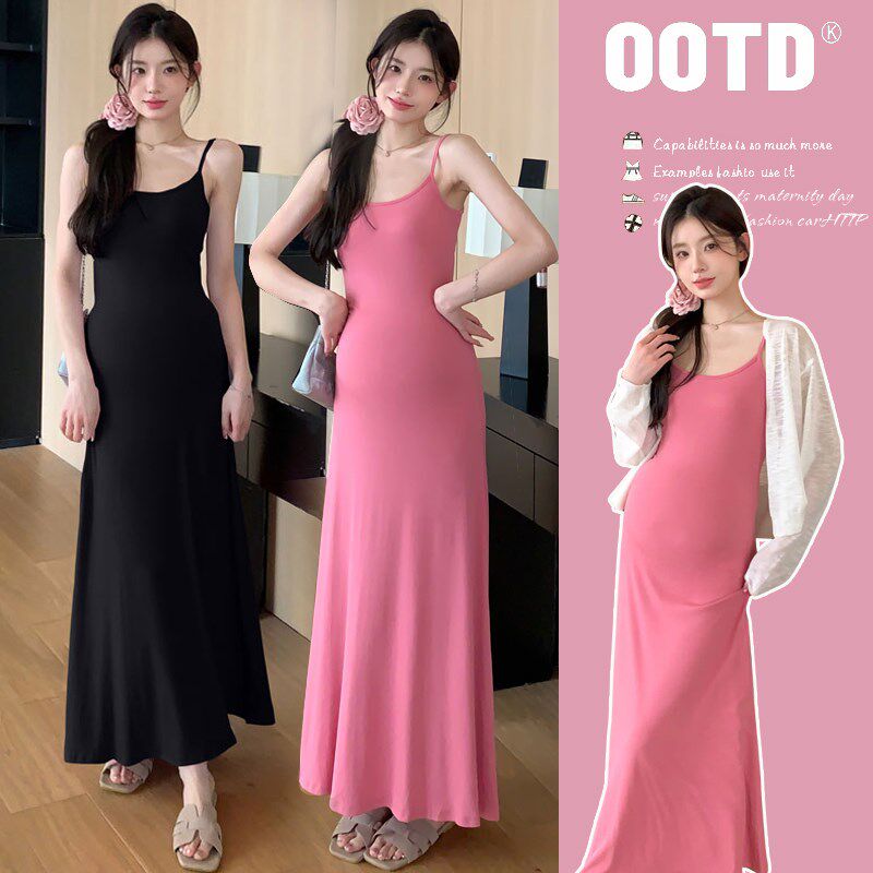 高端辣妈孕妇g长裙温柔风吊带裙子套装带胸垫夏季新款连衣裙免文