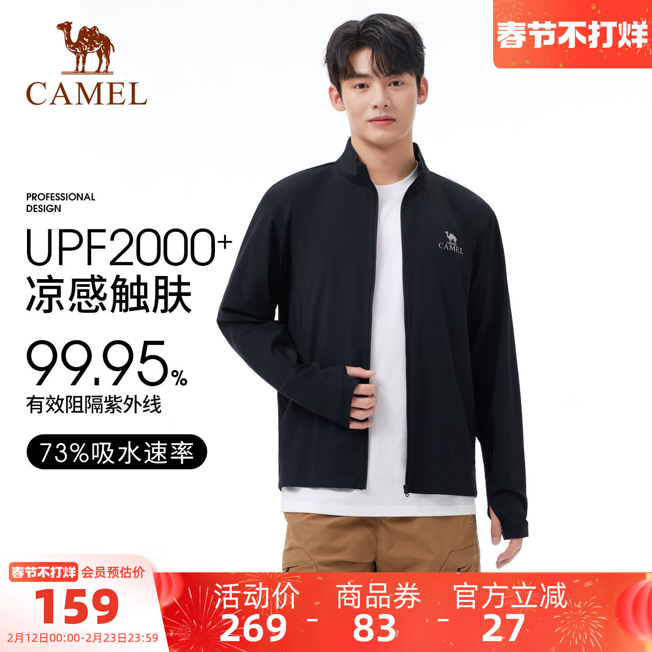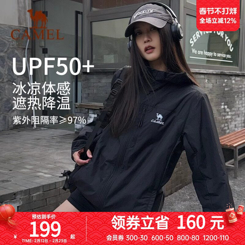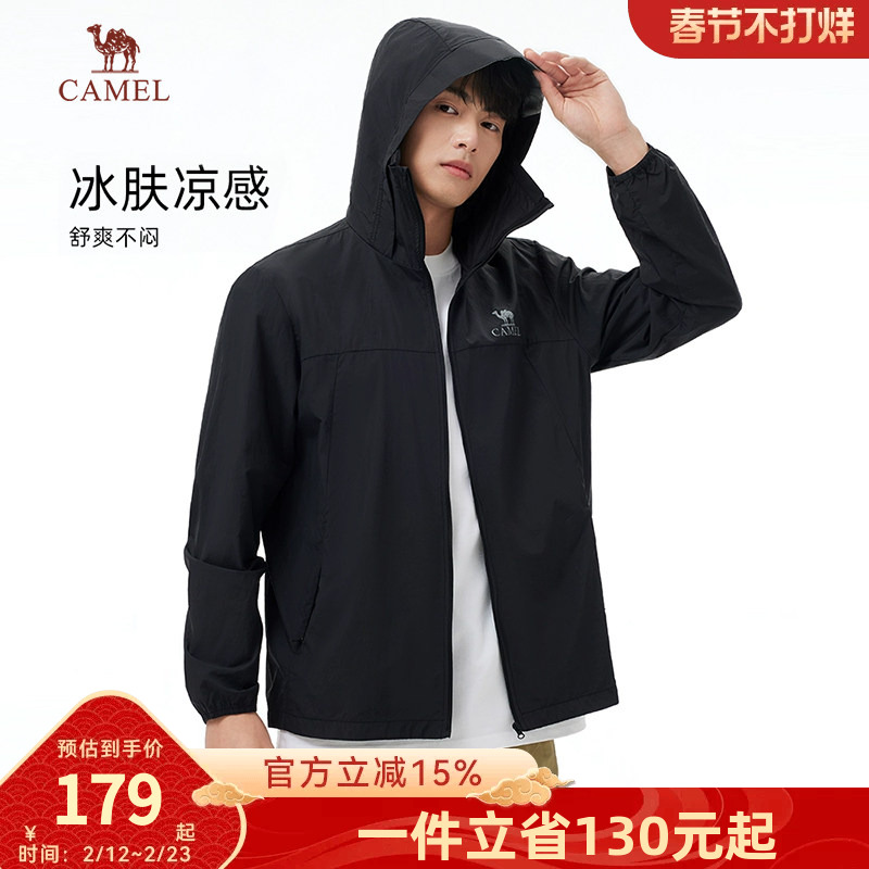骆驼雪壳防晒衣女冰感户外连帽外套春秋防紫外线运动服黑色夹克男
