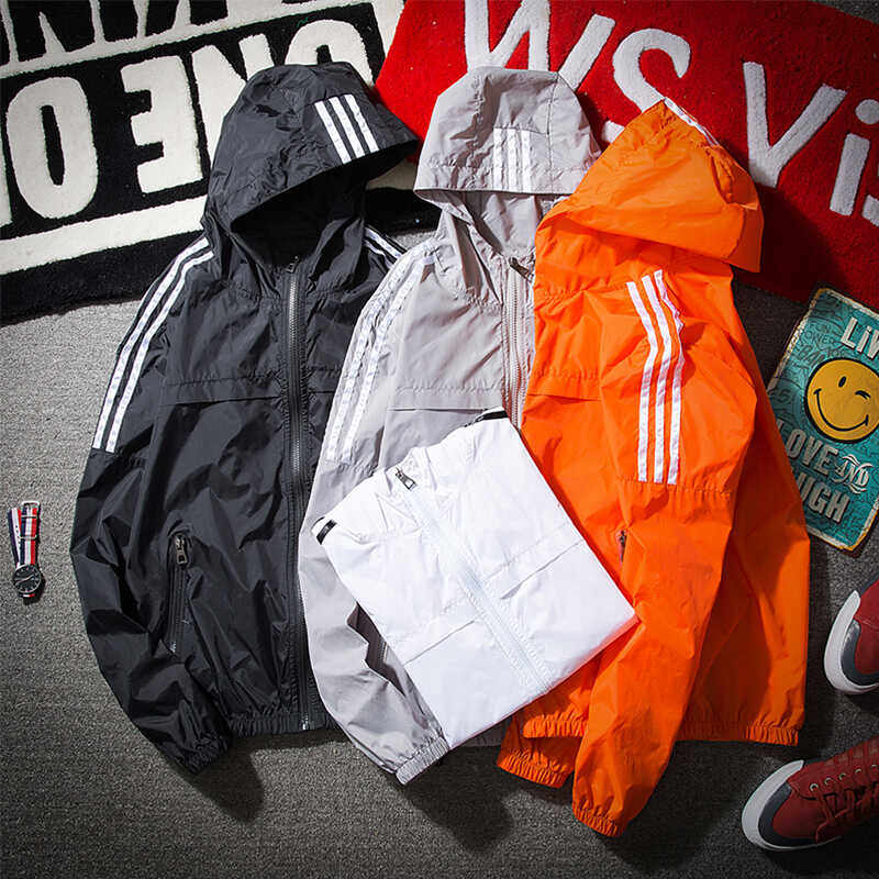 2024夏季男防晒衣夹克三杠防紫外线连帽运动外套超薄情侣皮肤风衣