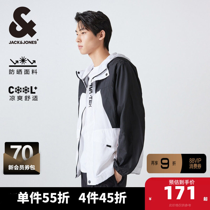 杰克琼斯男装夹克外套春季凉感防晒衣男户外防紫外线连帽宽松透气