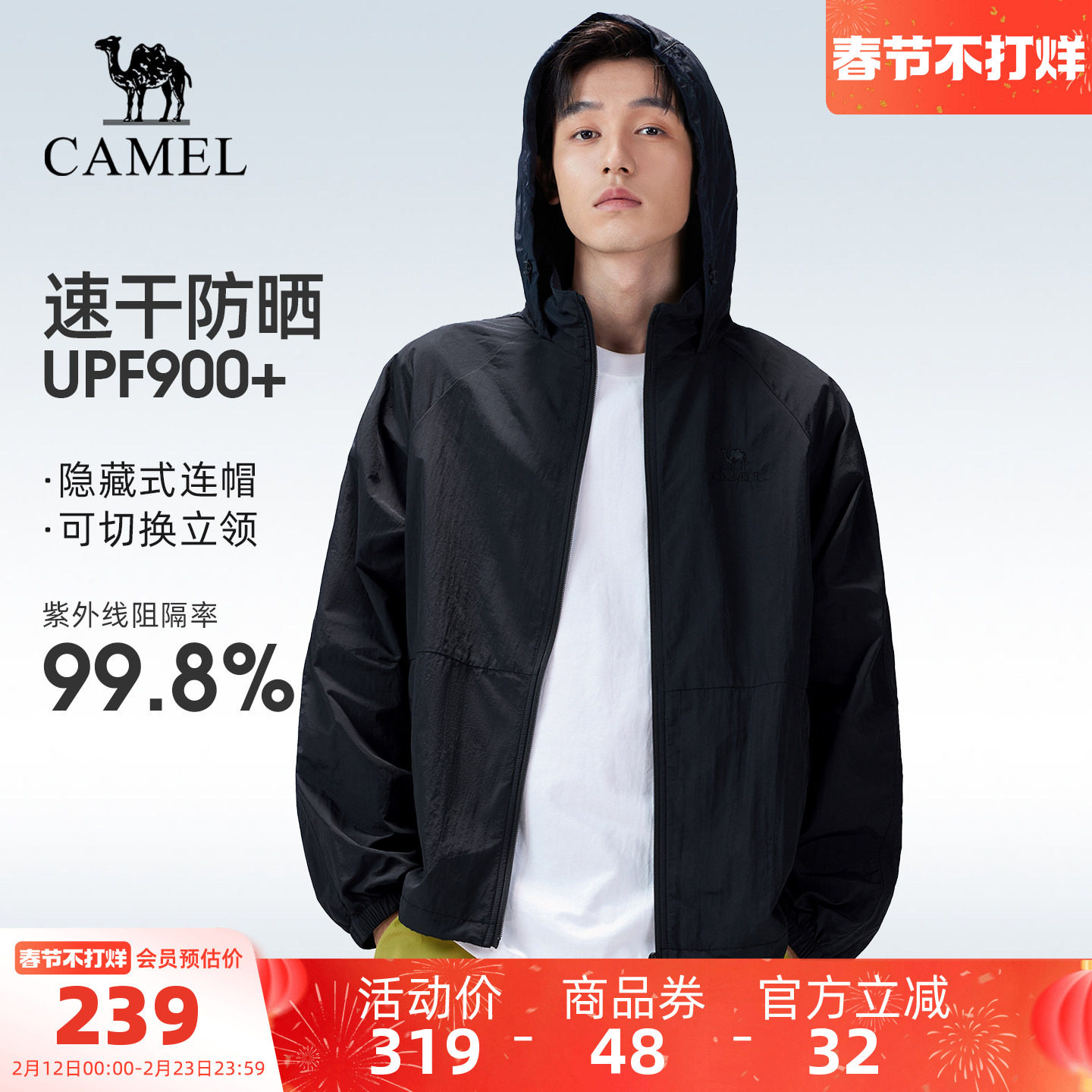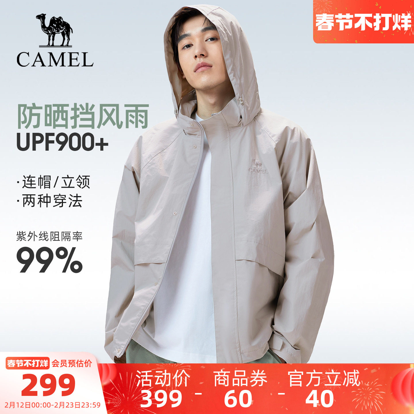 骆驼户外防晒衣2026春夏新款男女同款防风运动连帽夹克防晒服外套