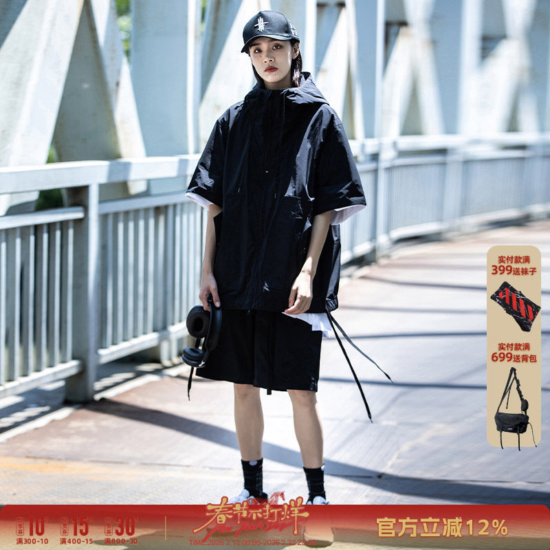 AOGZ防晒短袖冲锋上衣套装男女春夏季新款机能风夹克帽衫工装外套