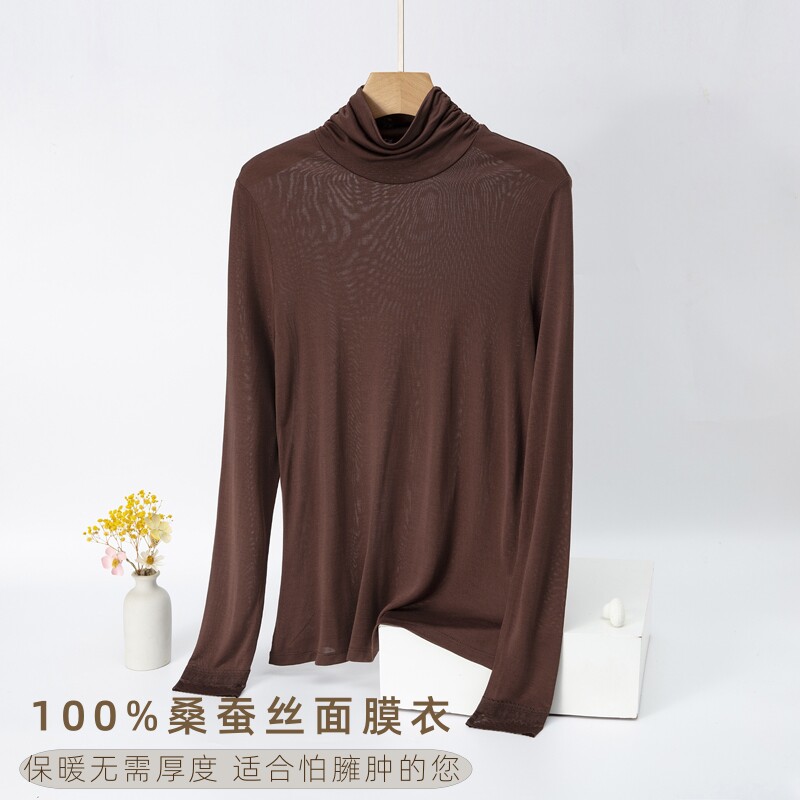 真丝面膜衣100%桑蚕丝高领秋冬长袖打底衫女轻薄透气保暖上衣内衣