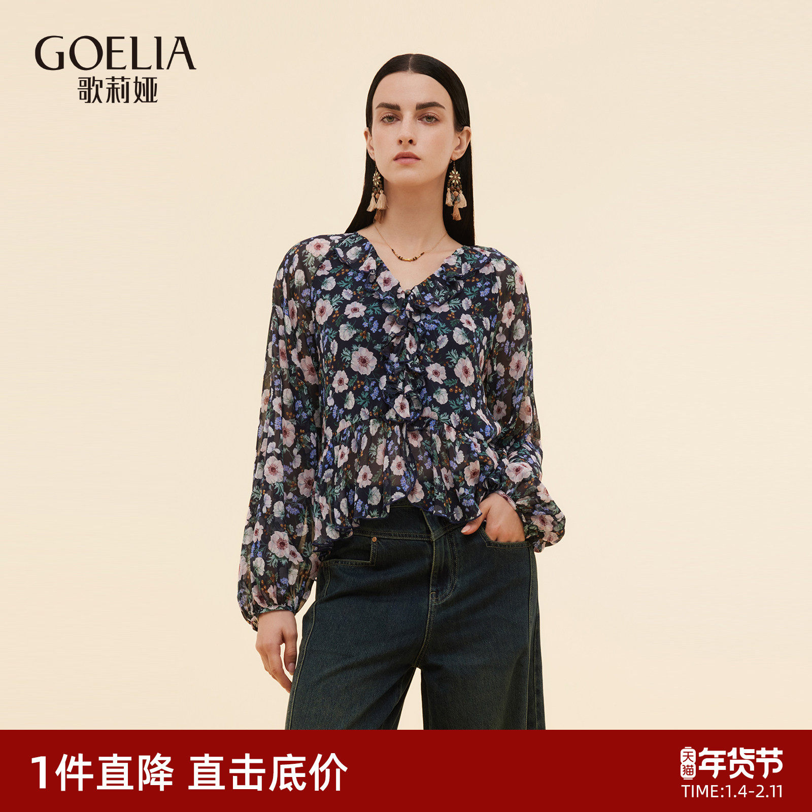 一丝牵 100桑蚕丝花罗真丝上衣女国风气质灯笼袖长袖小衫四季可穿