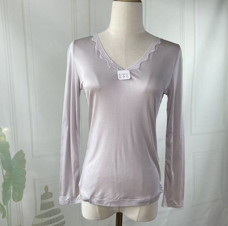 面膜肌底衣轻薄100%桑蚕丝女V领长袖打底衫42针真丝上衣秋衣内衣