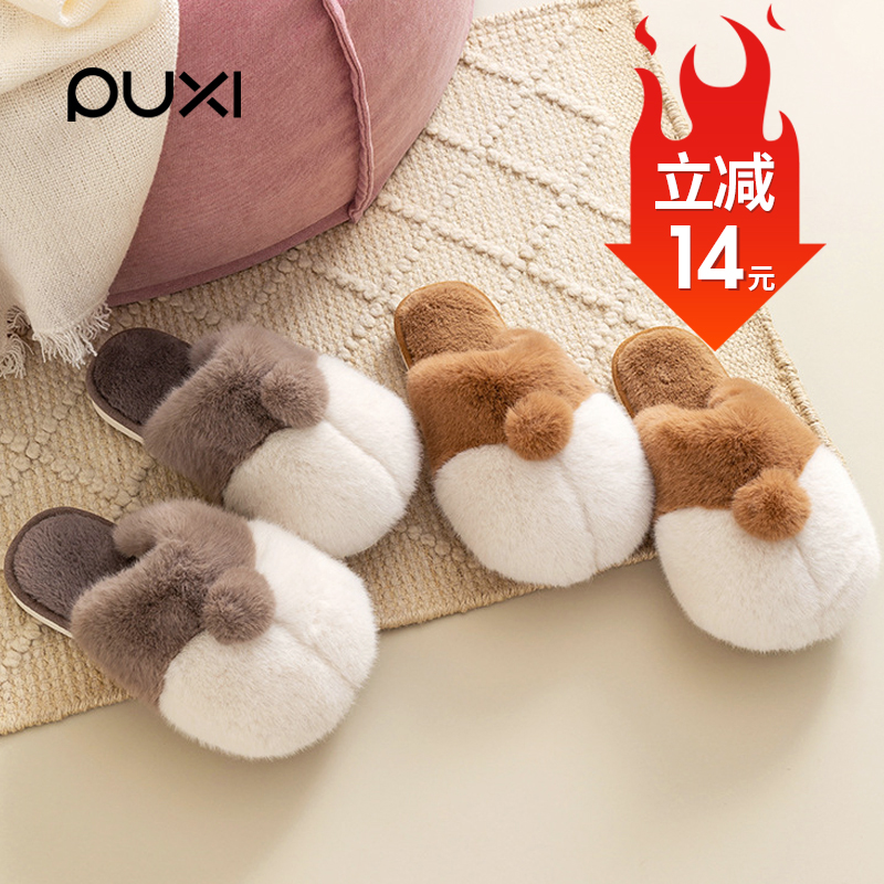 朴西柯基毛毛拖鞋女卡通秋冬厚底加绒室内居家包头可爱懒人棉拖鞋