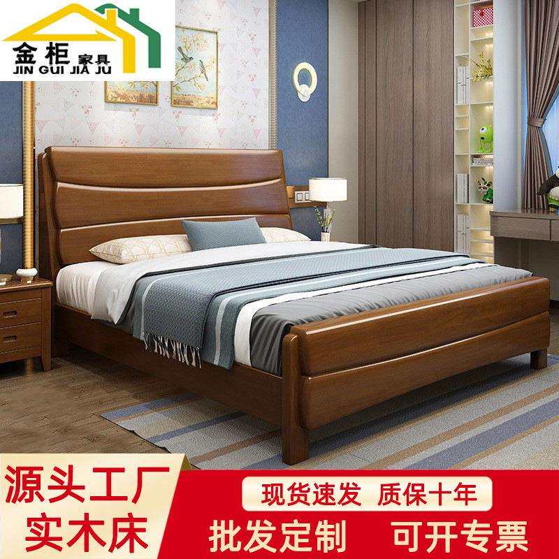 中式实木床1.8米主卧双人床简约现代经济型1.5m单人储物高箱婚床