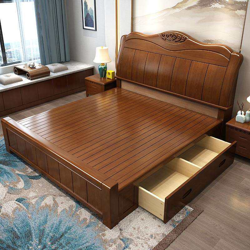 实木床1.8米双人床新中式家用1.5米单人床主卧经济型高箱抽屉大床