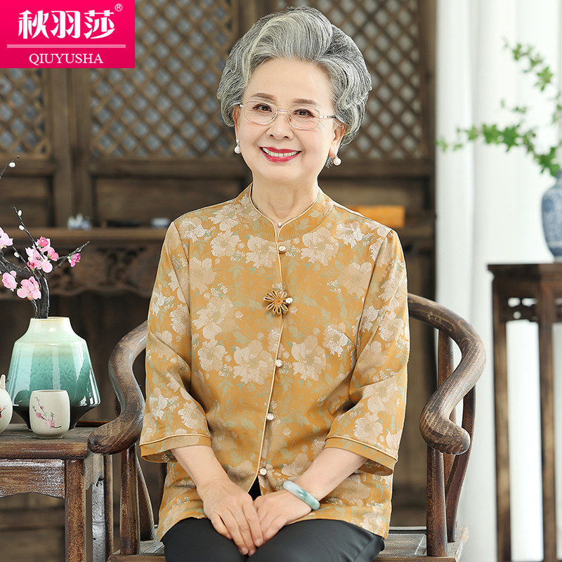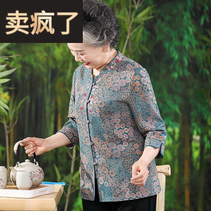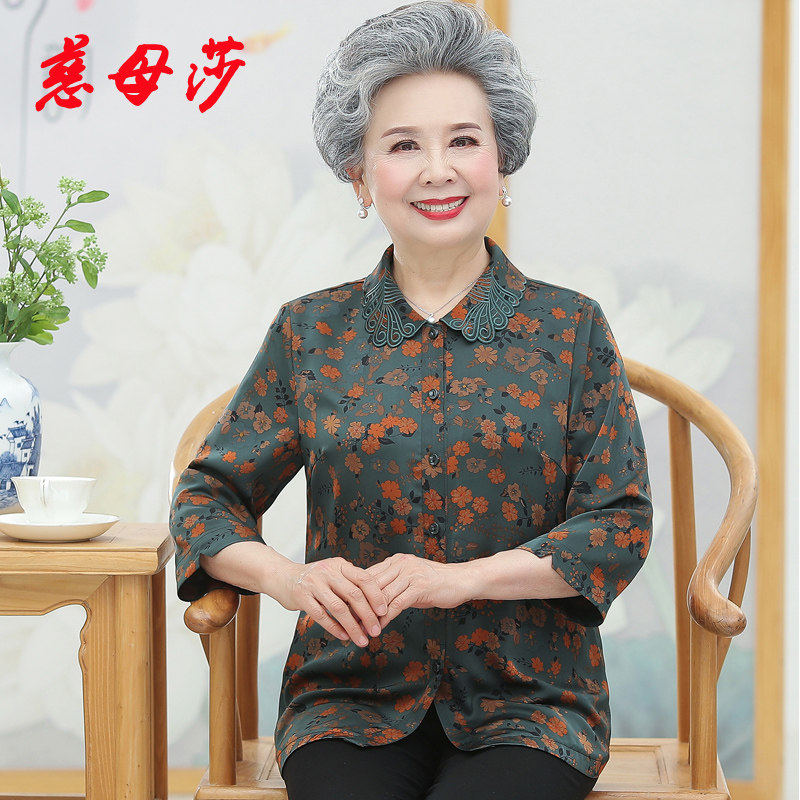奶奶夏装衬衫洋气时尚套装老年人女春季上衣妈妈衬衣老人太太衣服