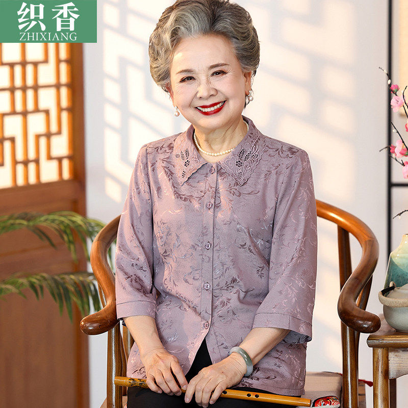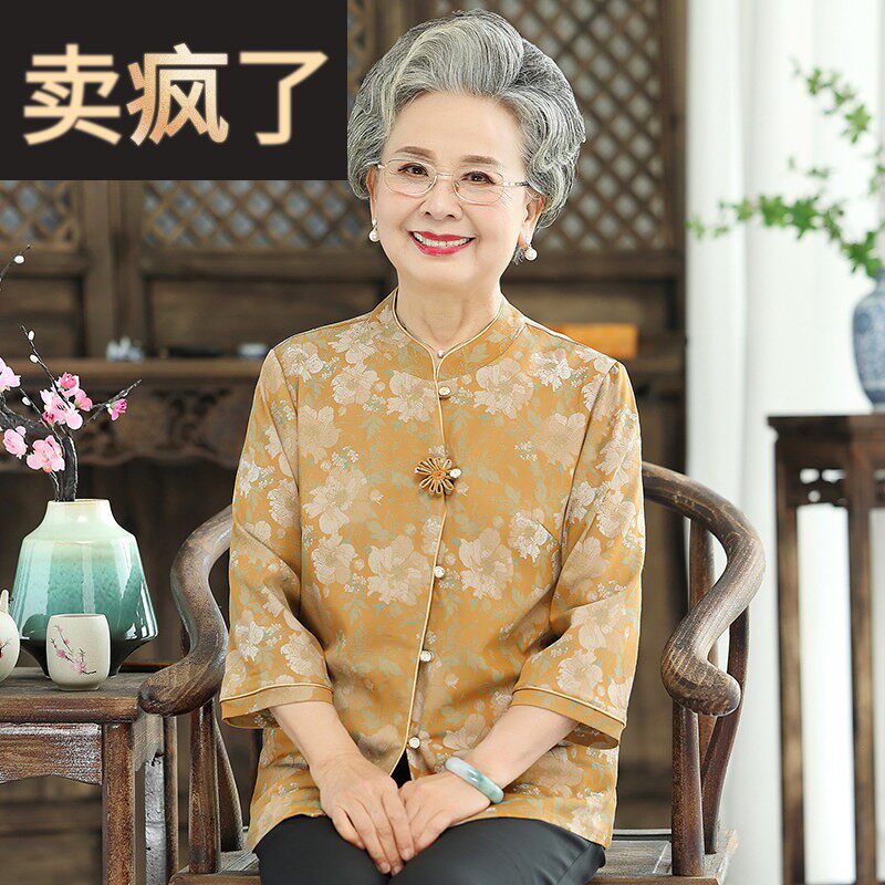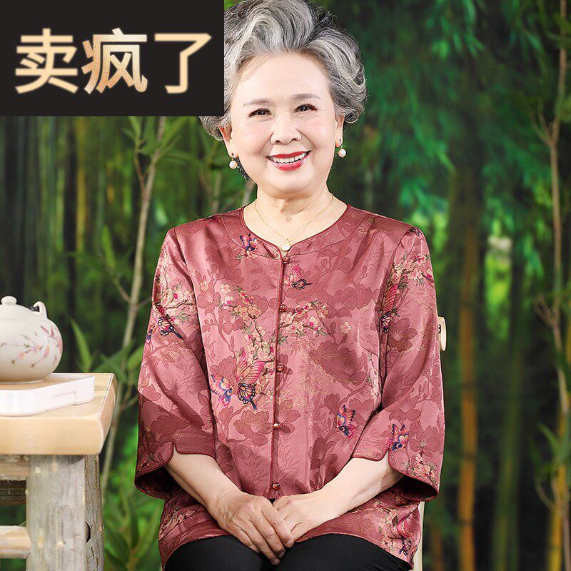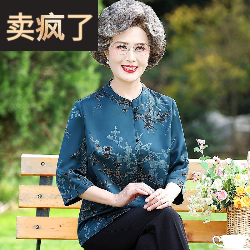 老年人夏装女高贵仿真丝上衣老人衣服老太太妈妈70岁套装奶奶衬衫