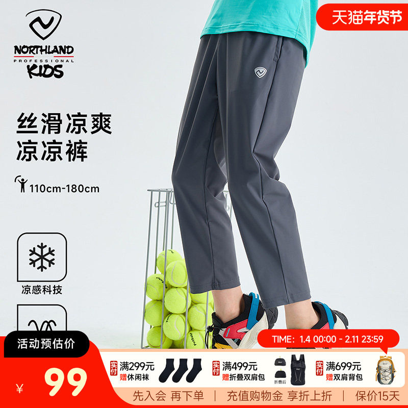 诺诗兰儿童长裤2025夏季速干裤男童弹力冰丝凉感裤男女童户外裤子