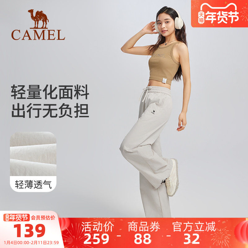 骆驼漫游防晒裤女夏季速干裤宽松高腰直筒户外登山休闲伞兵阔腿裤