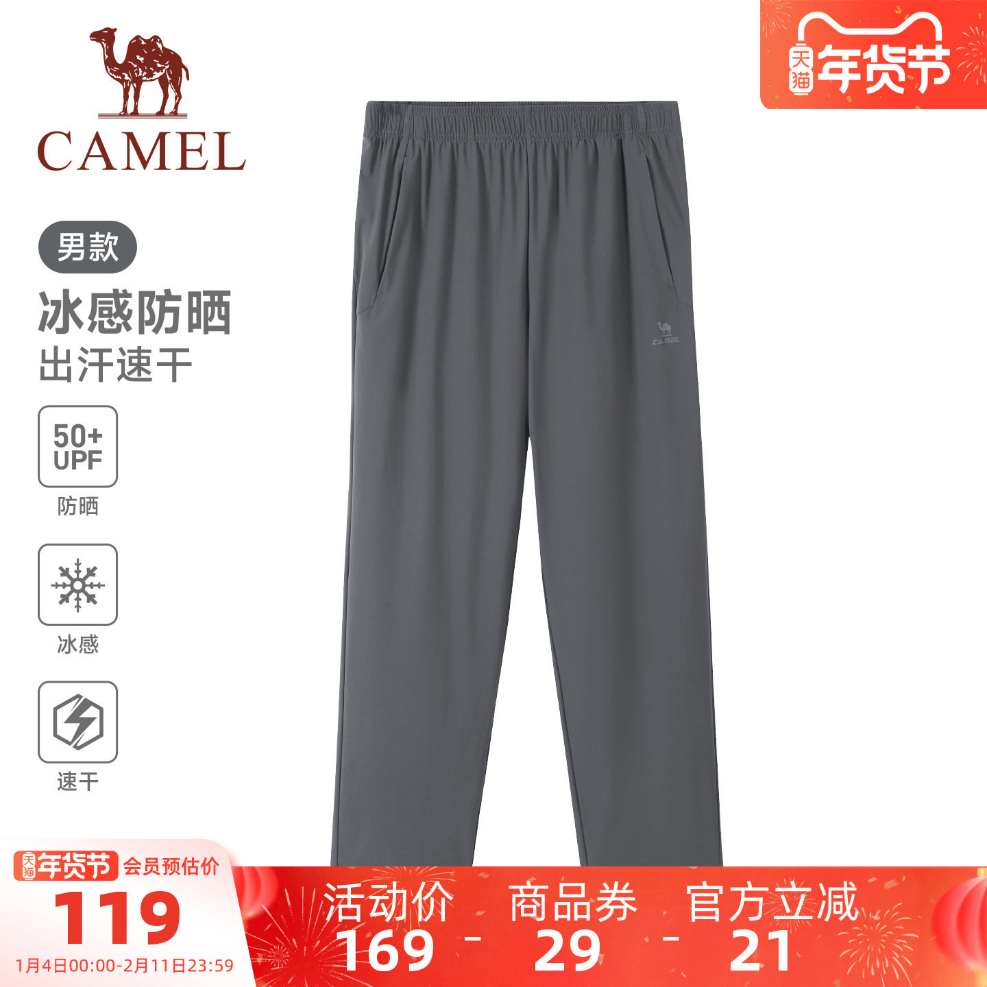 骆驼运动裤男2026夏季速干裤冰感防晒直筒休闲户外跑步健身裤子女
