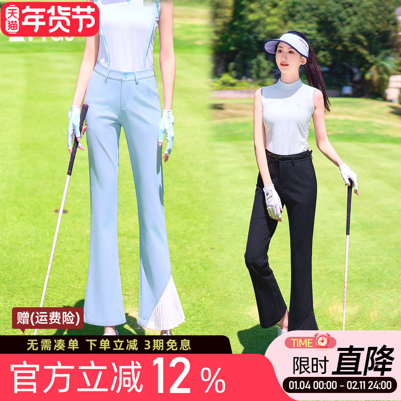 新款高尔夫长裤女裤春夏款修身显瘦女士微喇叭球裤户外运动开叉裤