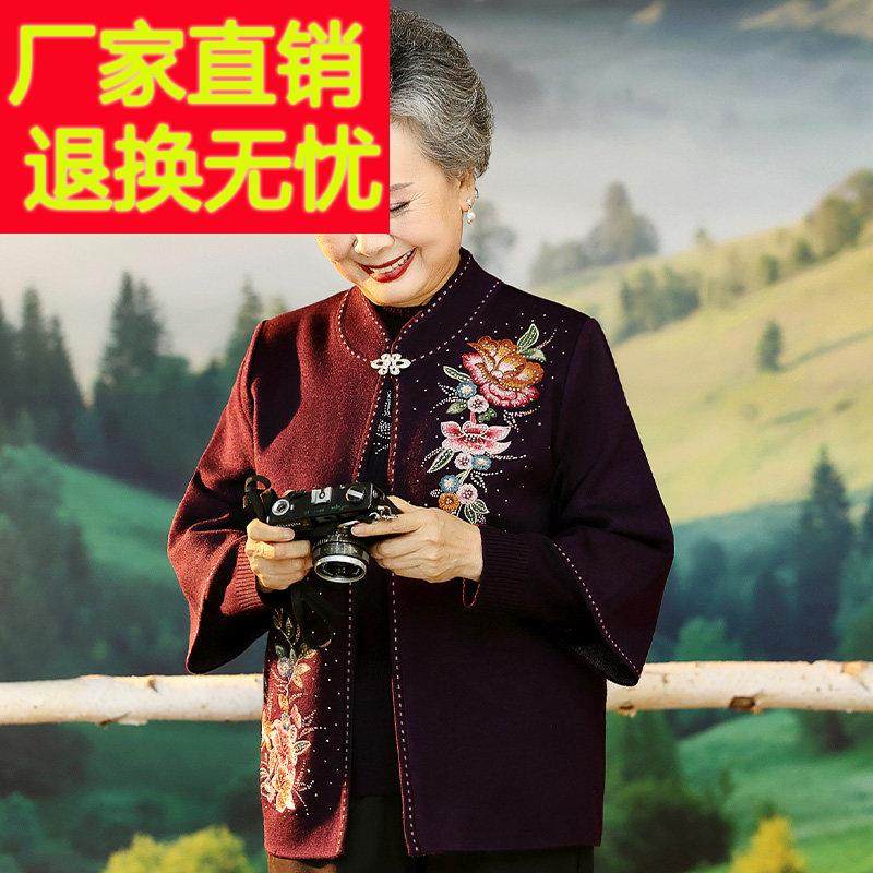 中老年女开衫老太太上衣毛衣妈妈春装老人外套老人秋冬装针织衣服