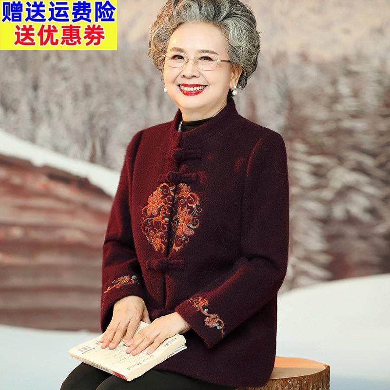 老年人春装女奶奶毛呢外套秋装老人太太妈妈喜庆生日过寿唐装衣服