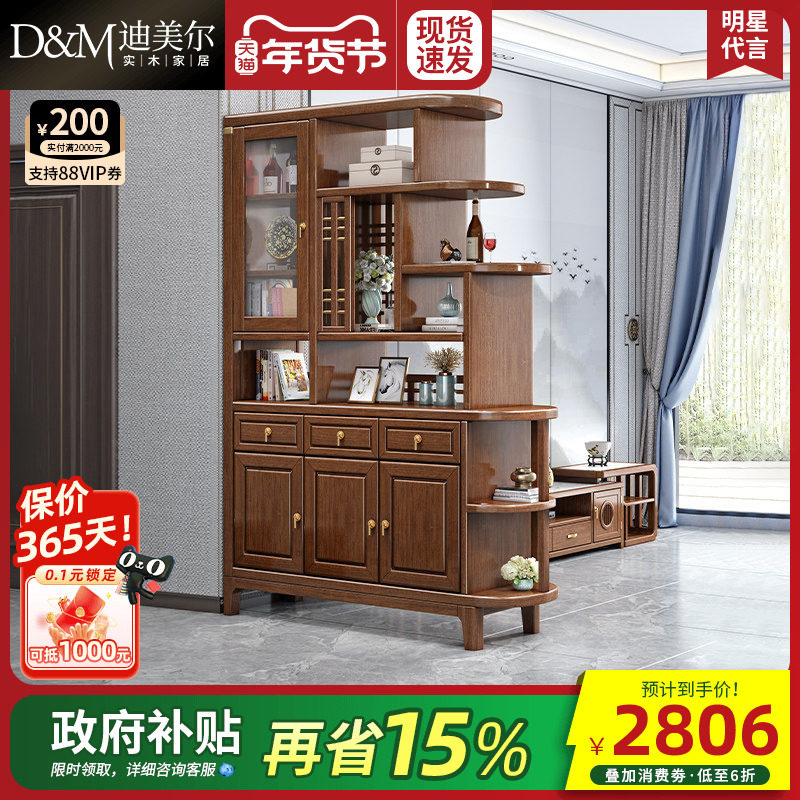 新中式实木入户玄关柜胡桃木双面屏风隔断客厅间厅柜门厅柜储物柜