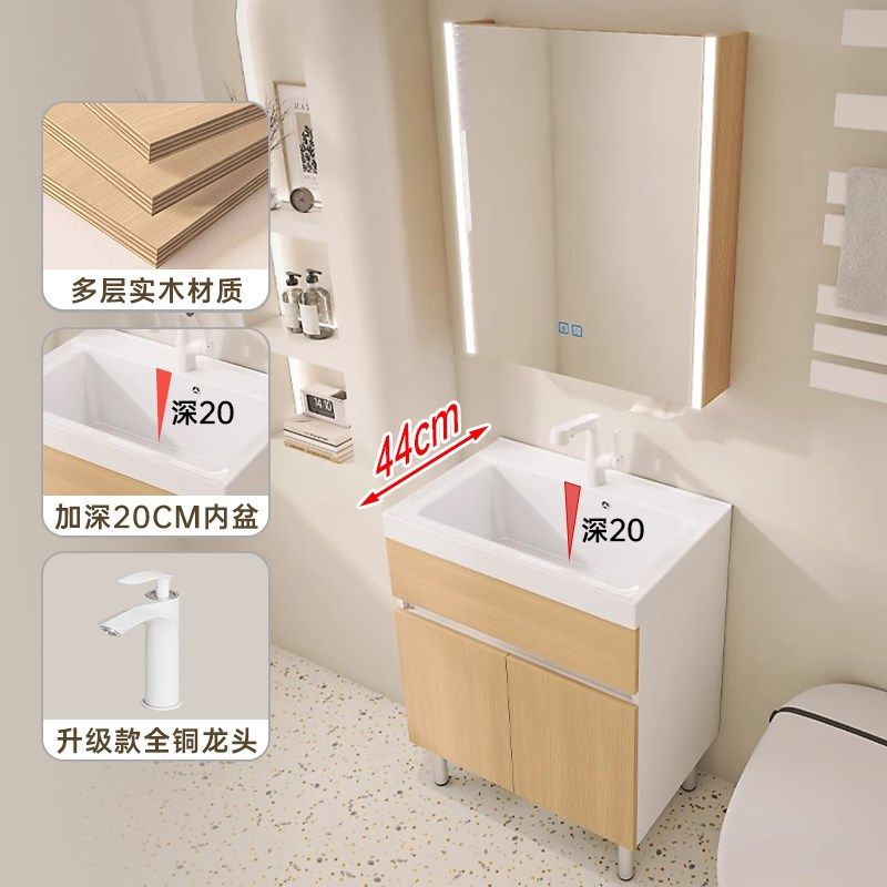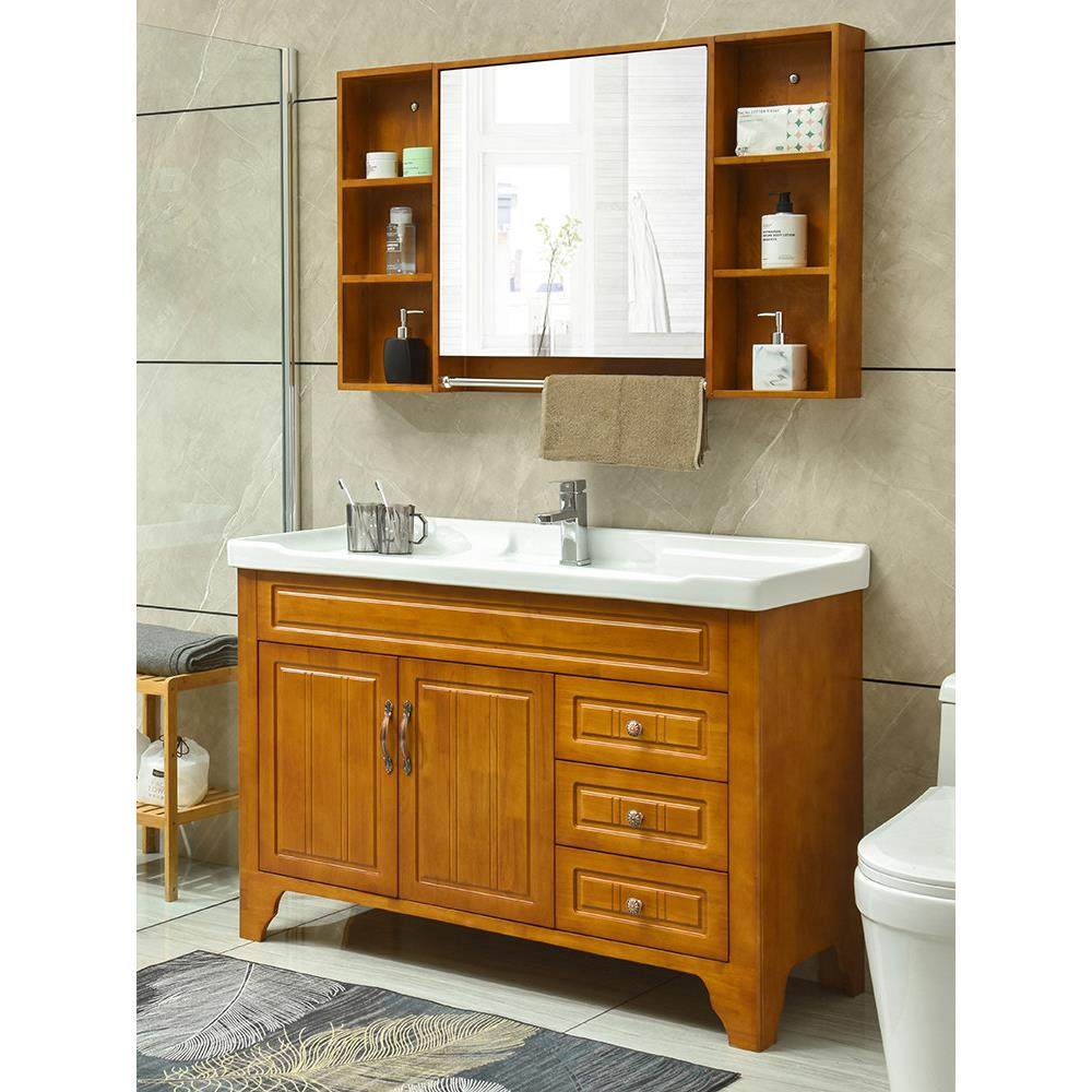 简约卫生间陶瓷一体盆洗手盆柜组合浴室柜洗漱台洗脸盆实木卫浴柜