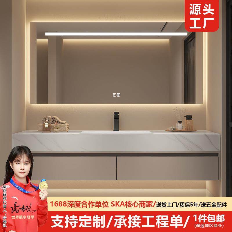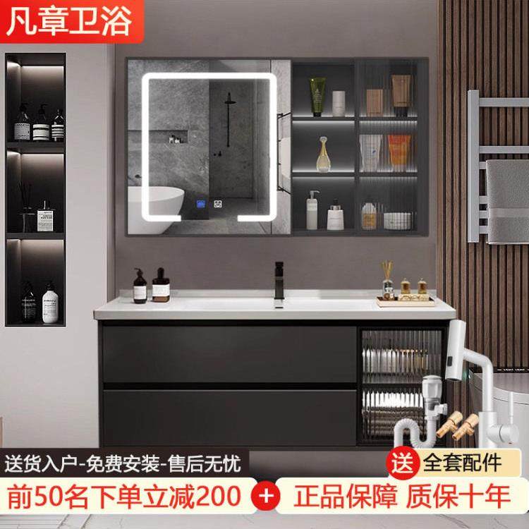 现代轻奢浴室柜岩板陶瓷盆卫生间洗脸洗漱台智能实木卫浴柜厂家新
