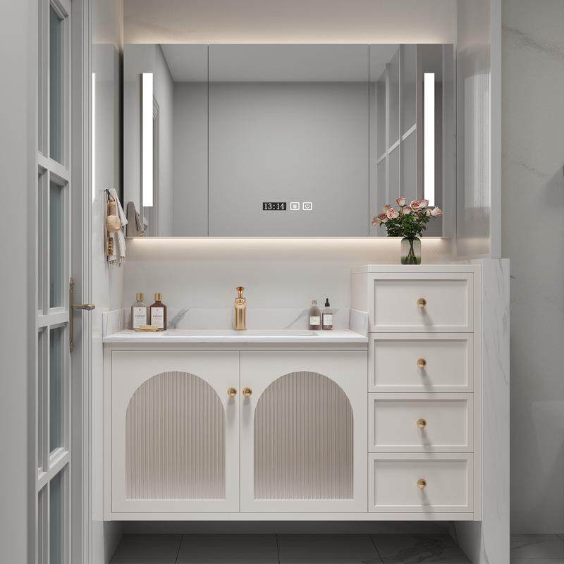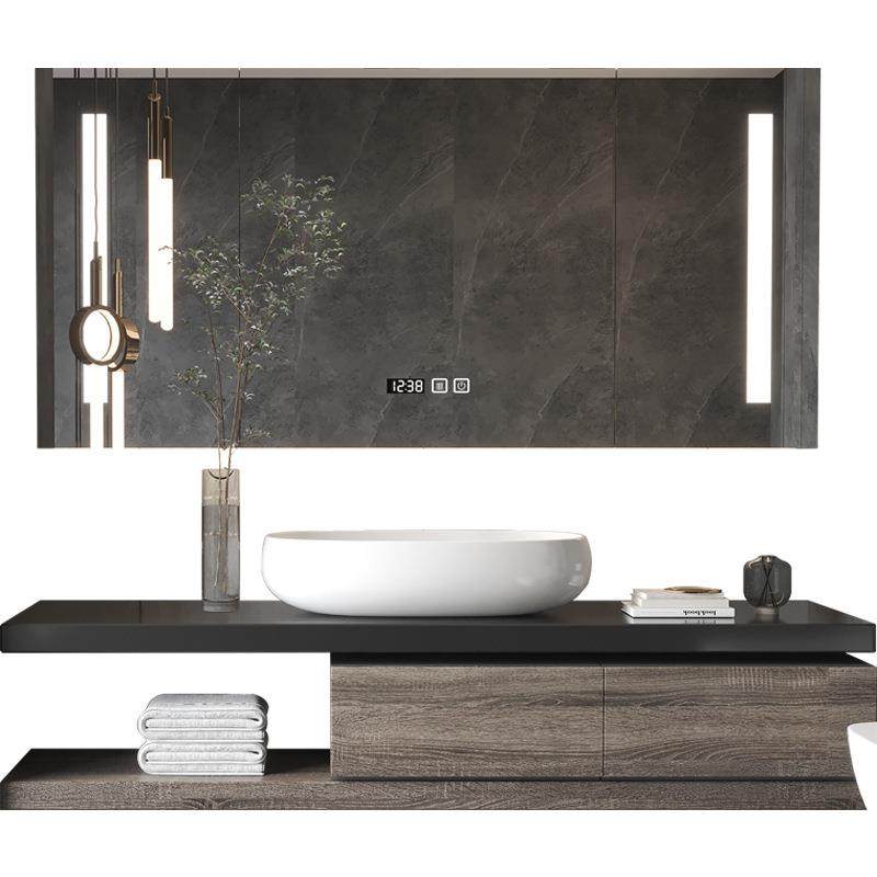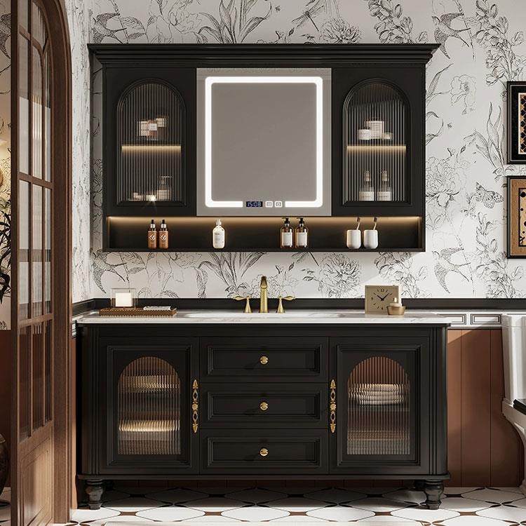 智能镜柜简约美式浴室柜组合岩板橡木实木卫浴柜落地式洗脸盆柜子