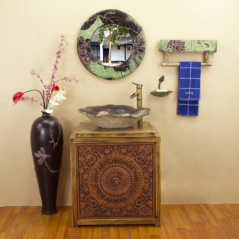 中式浴室柜组合实木卫浴柜落地仿古洗脸面盆柜卫生间洗漱台小户型