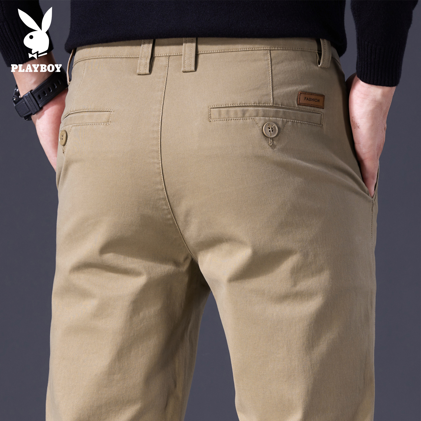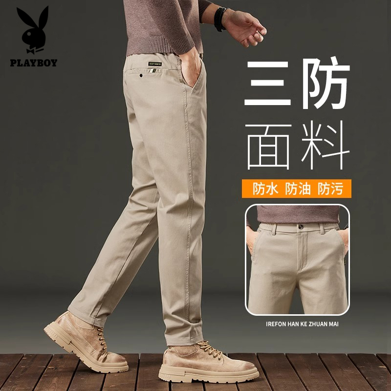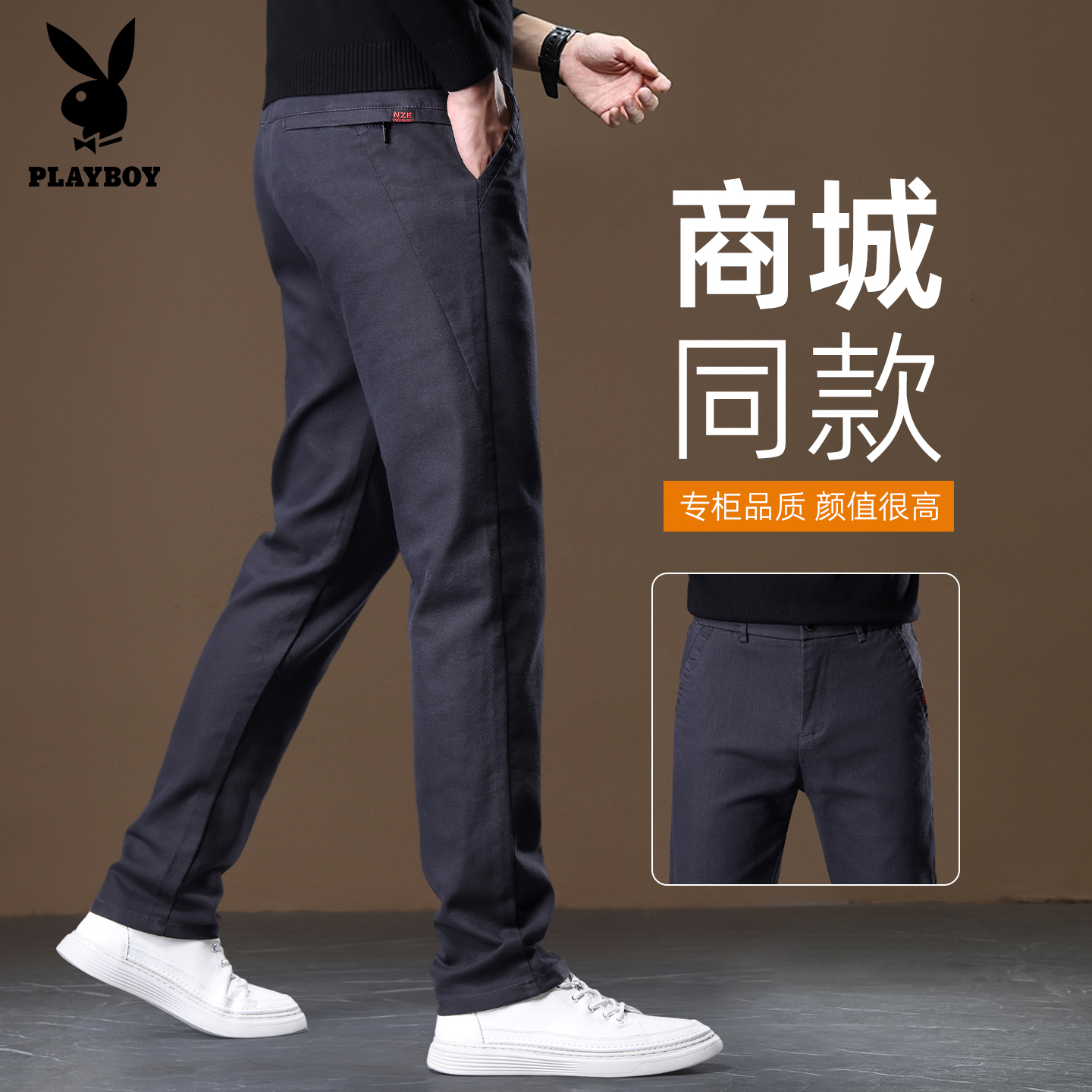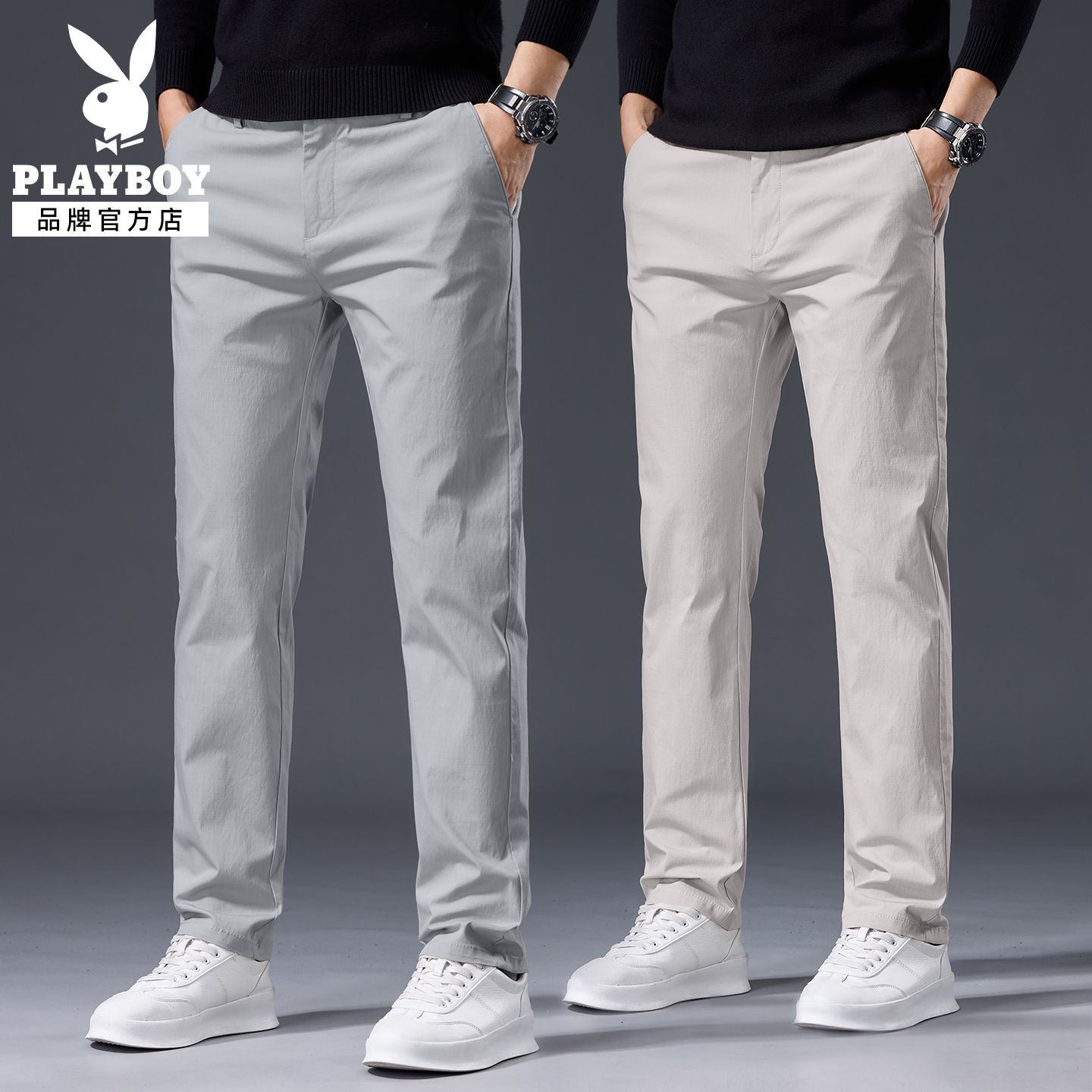 花花公子弹力直筒休闲长裤男士春秋款2025新款修身男裤子纯棉厚款
