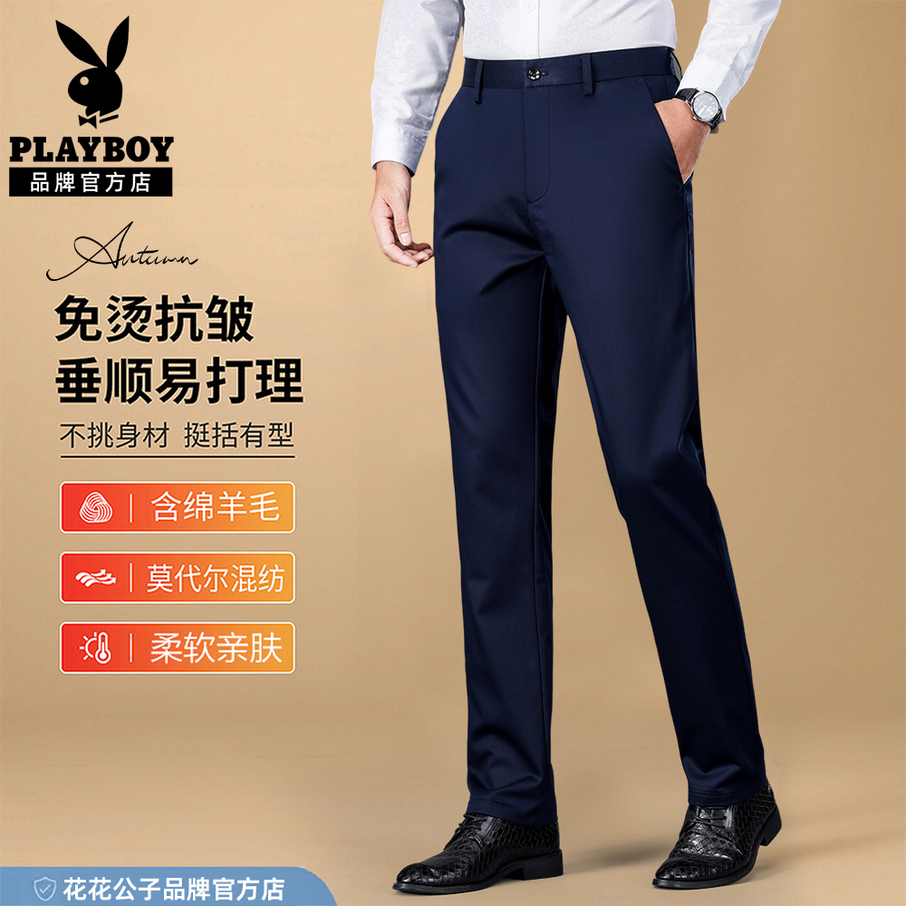 花花公子秋季2025新款休闲裤男士修身直筒商务免烫西装长裤春秋款