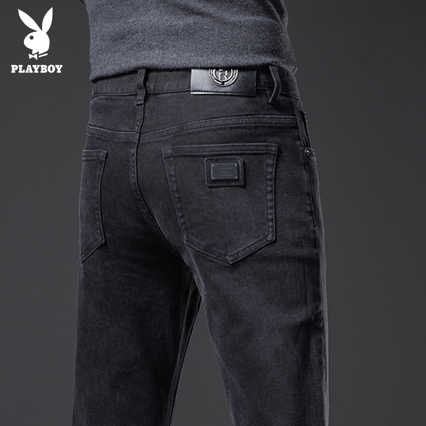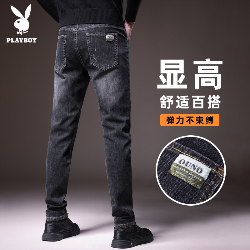 花花公子2025春秋季新款牛仔裤男士修身直筒弹力百搭黑色休闲长裤
