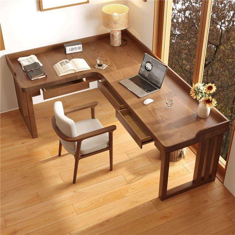 实木l型转角书桌电脑桌办公写字桌卧室工作台家用靠墙拐角学习桌