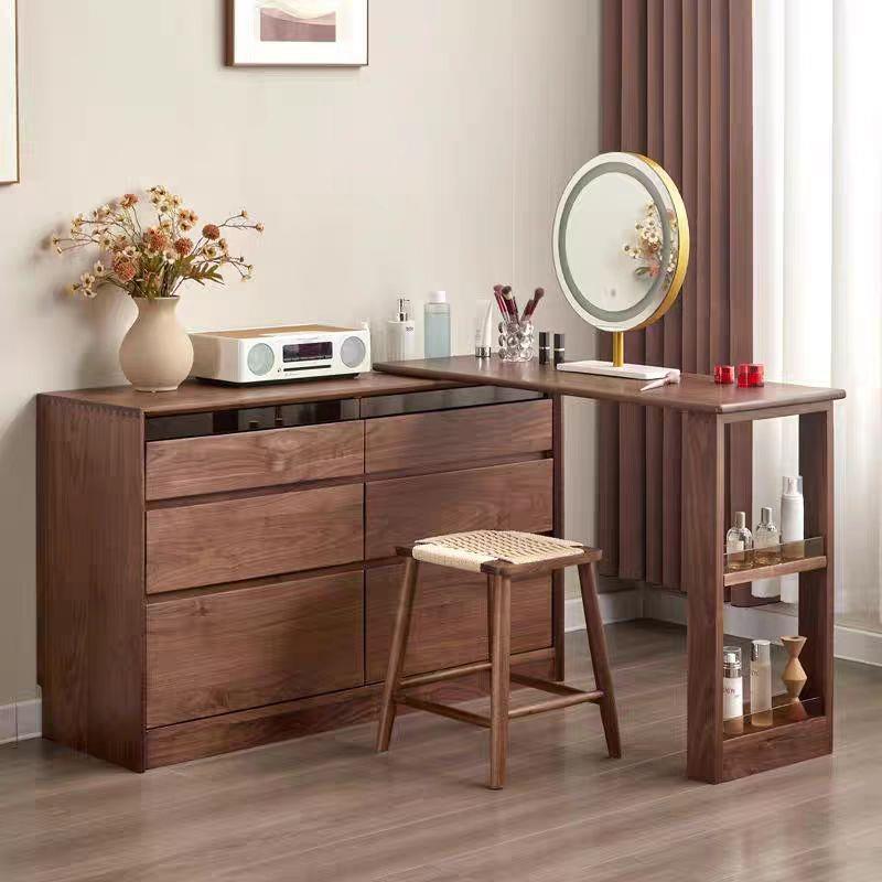 北美黑胡桃木梳妆台斗柜一体化妆桌卧室原木可伸缩实木转角写字台