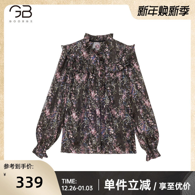 谷邦法式碎花衬衫女2025秋季新款荷叶边领设计感别致雪纺衫上衣