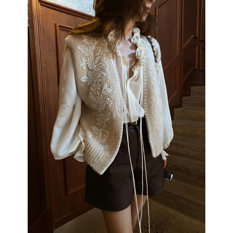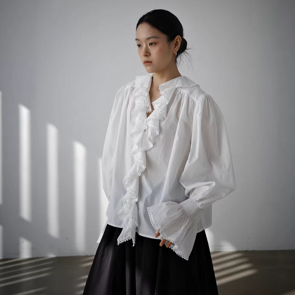 - 蕾丝立领衬衫女长袖