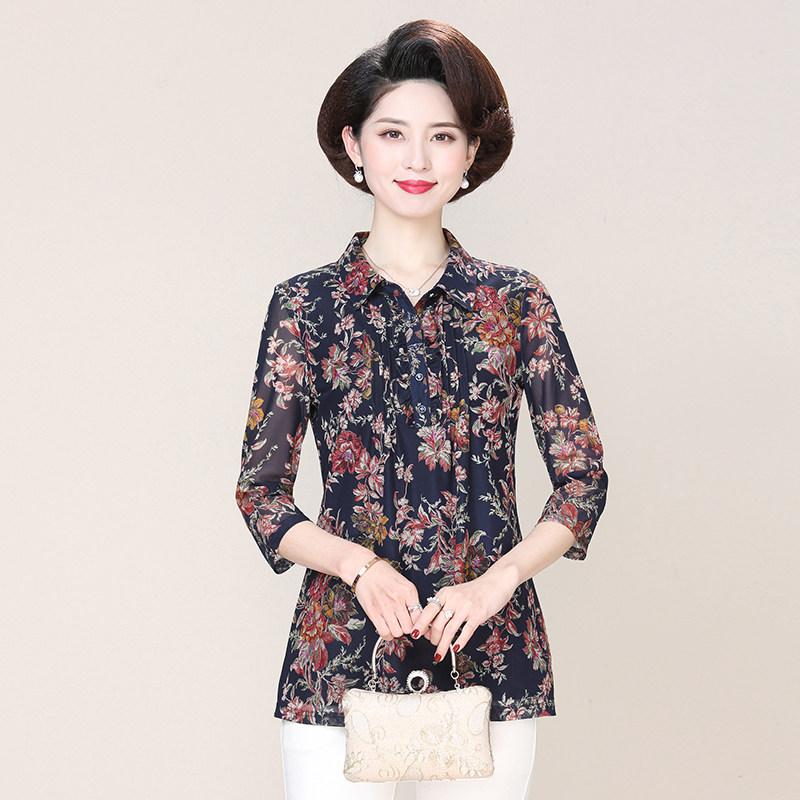 中年妈妈上衣春夏新款老人七分袖衬衫女台湾纱阔太太洋气高贵小衫