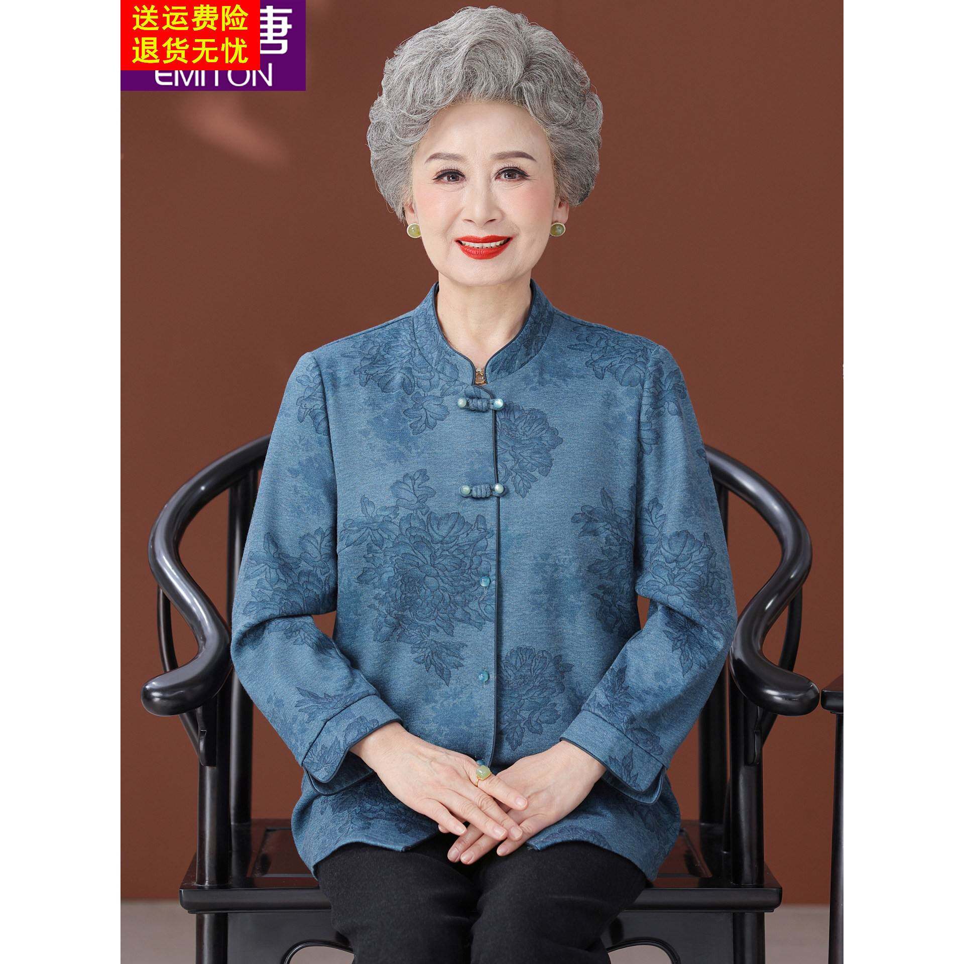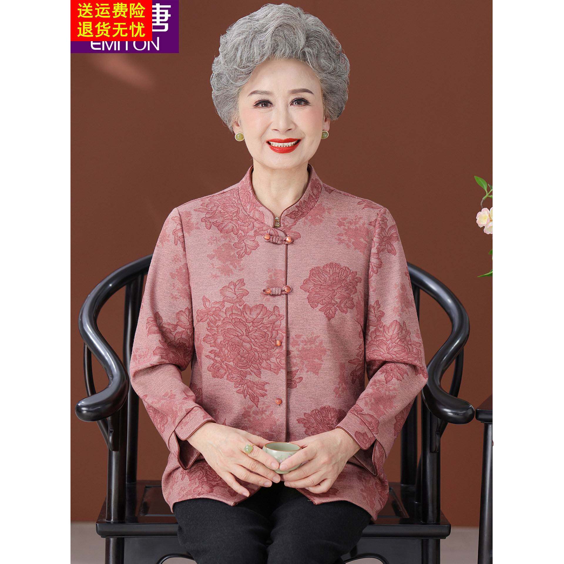 中老年人秋装女奶奶装外套春秋妈妈长袖衬衫60奶奶老太太老人衣服