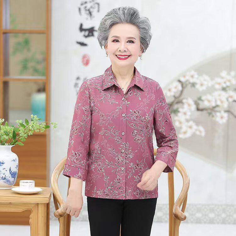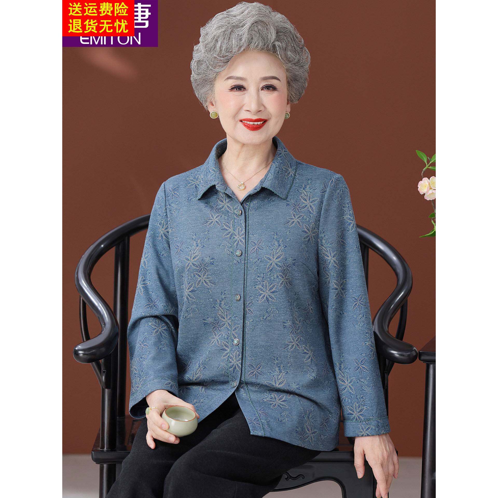 老年人春装女衬衫长袖大码奶奶衣服妈妈春秋薄外套老人老太太衬衣