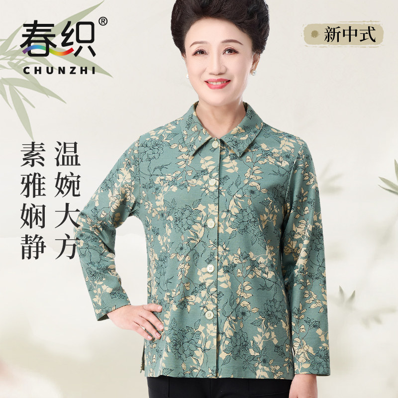 老年人春装女长袖衬衫奶奶套装老人衣服春秋中老年女装妈妈薄外套
