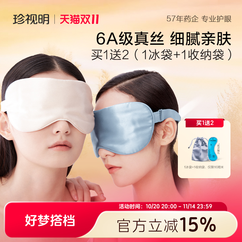 珍视明真丝眼罩遮光睡眠眼罩亲肤透气桑蚕丝真丝眼罩睡觉专用男女