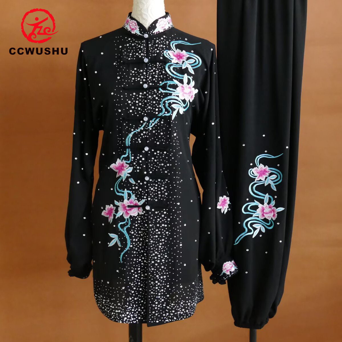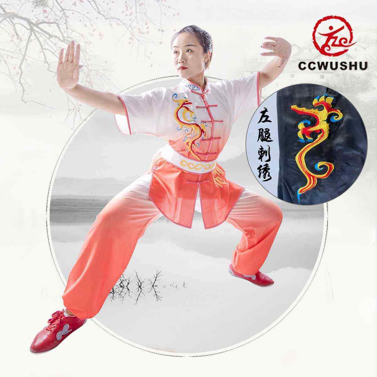 太极服新款棉加丝表演比赛长短袖春秋夏季女中国风中老年男练功服