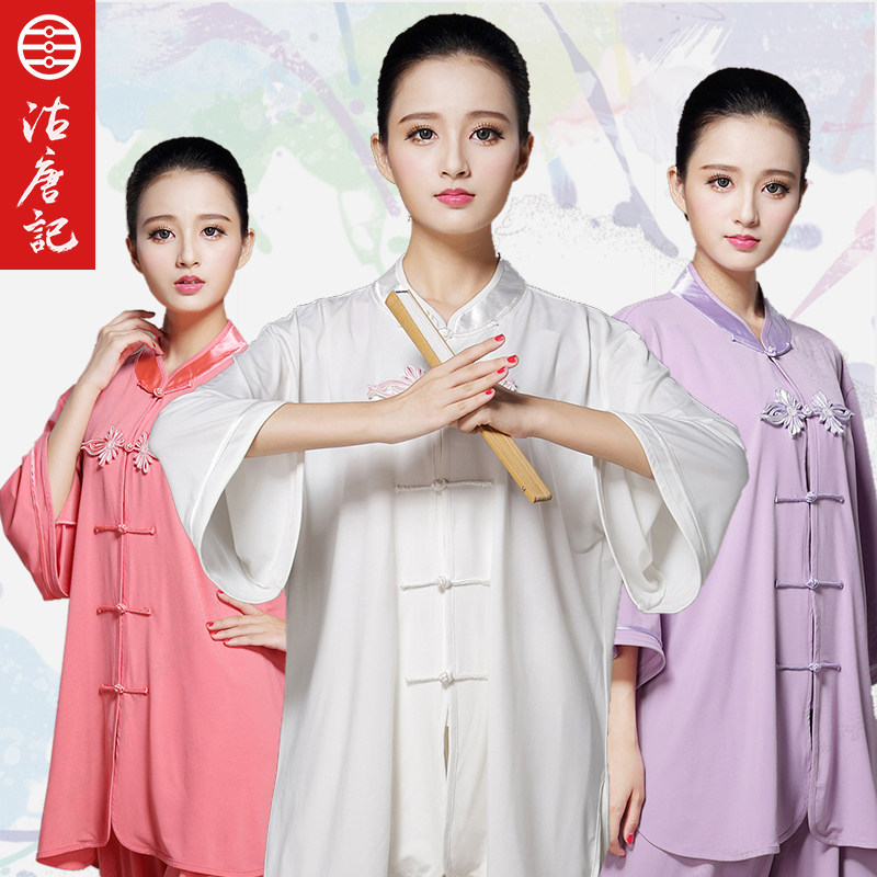 沽唐记时尚中国风水晶麻中袖夏季太极服 女士短袖太极练功服晨练