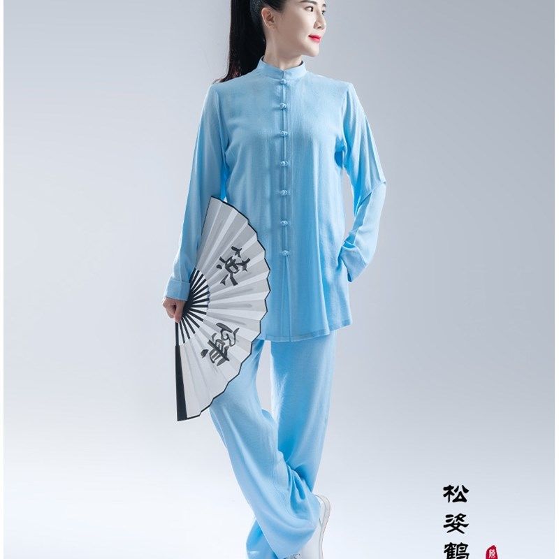 棉加丝加厚太极服女士服装夏季薄款棉麻中老年清晨练功太极拳服男