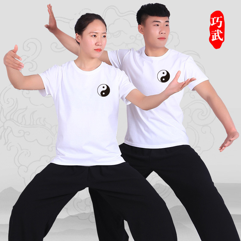 巧武夏季太极服男女全棉短袖 T恤武术太极拳八段锦练功服团体定制