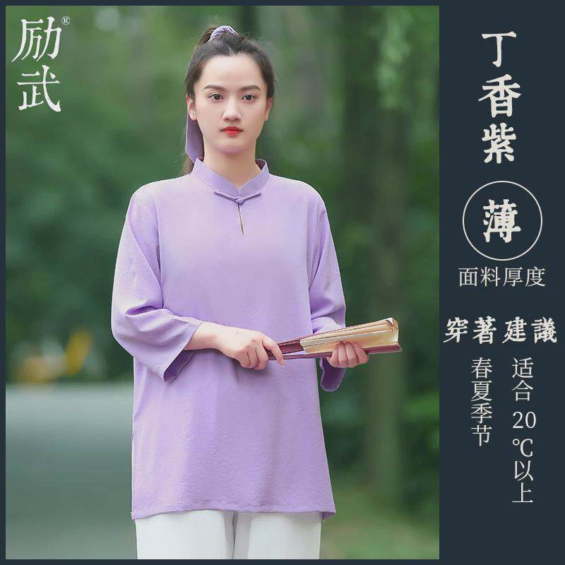 励武2024年新款夏季太极服女薄国风八段锦太极拳练功服七分袖禅意