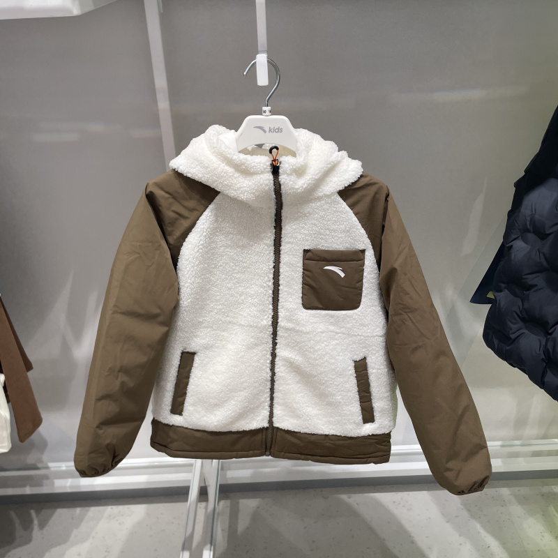 安踏男童夹克上衣25冬季新款男大童轻型保暖绒连帽外套 352546907