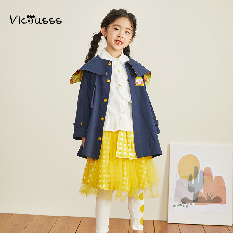 【清仓特卖199元2件】Viciusss女童外套春秋洋气风衣男童夹克上衣