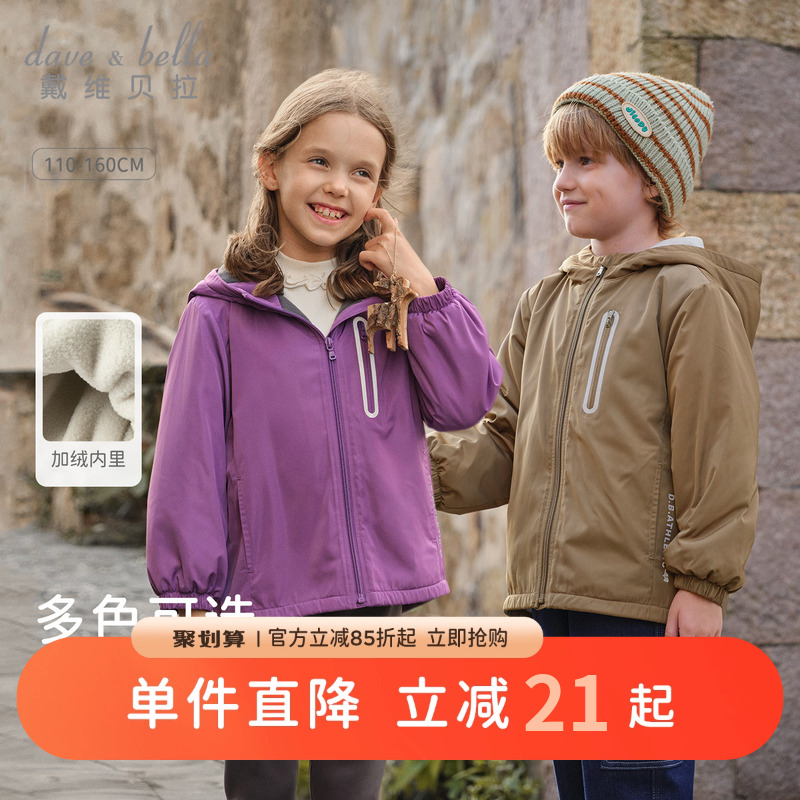 戴维贝拉男童加绒外套新款冬装儿童防风夹克宝宝休闲上衣棉服童装