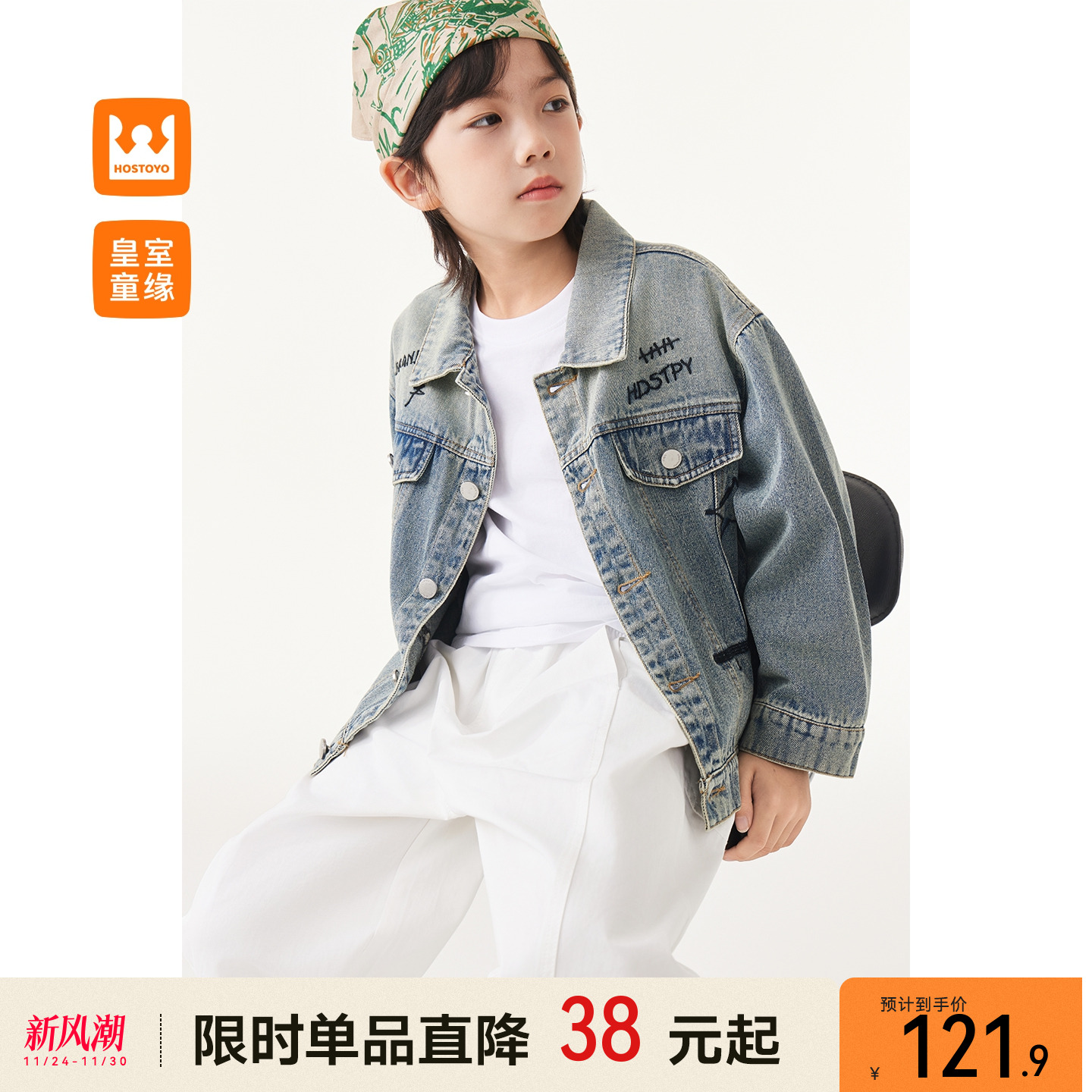 皇室童缘儿童刺绣牛仔外套2025秋季新款男童夹克上衣中大童外套